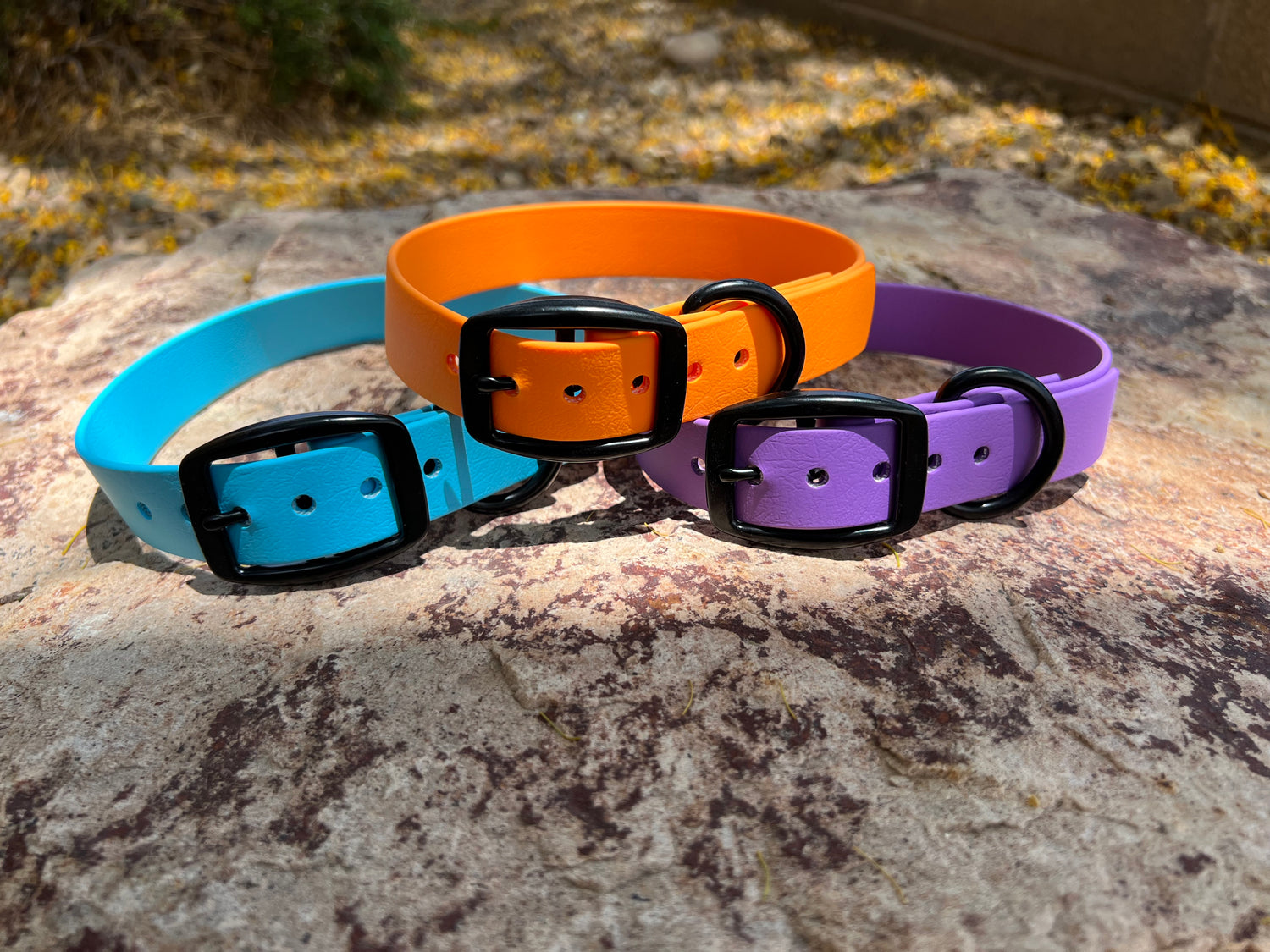 Created for everyday adventures our collars are the perfect addition to your dogs wardrobe! All of our collars are made with BioThane making them 100% waterproof, easy to clean, and stink-proof.